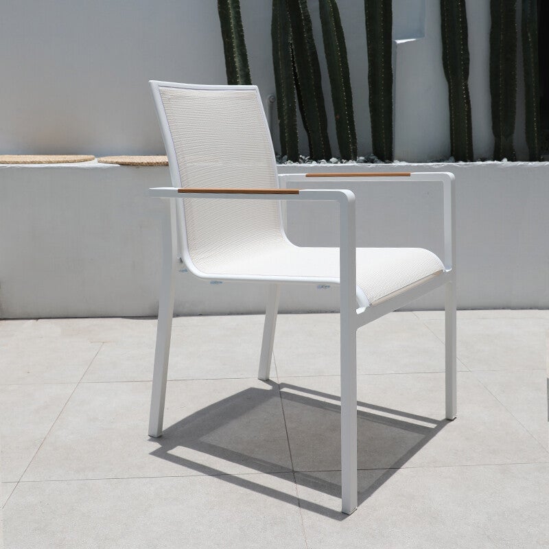 + 6 Chaises empilables en aluminium avec revêtement en textilène doublé