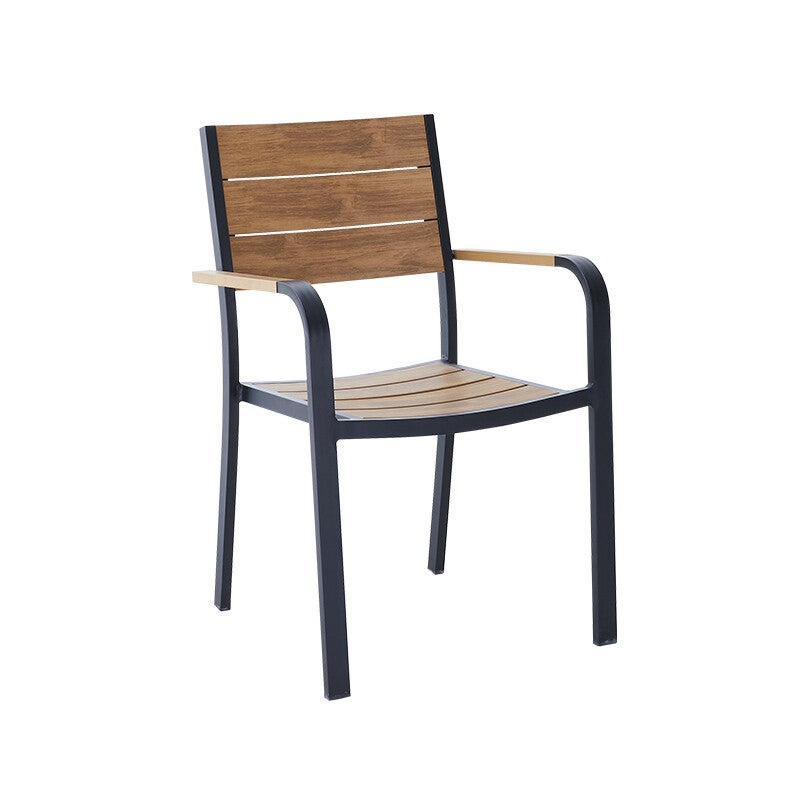 8 Chaises en aluminium avec assise, dossier et accoudoirs aspect bois