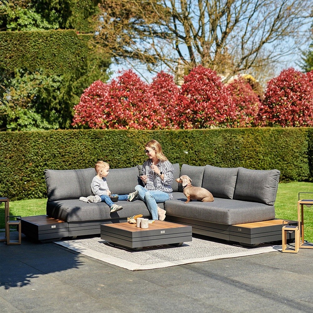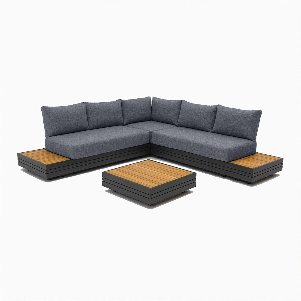 - de 2 banquettes (droite et gauche) avec tablette en aluminium et revêtement aspect bois, dimensions 175x65x75 cms