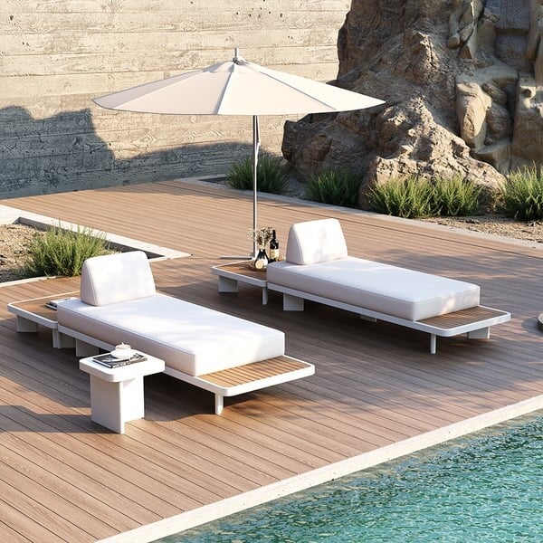 - de 2 canapés ou 2 transats avec tablette, 190x80x79 cms