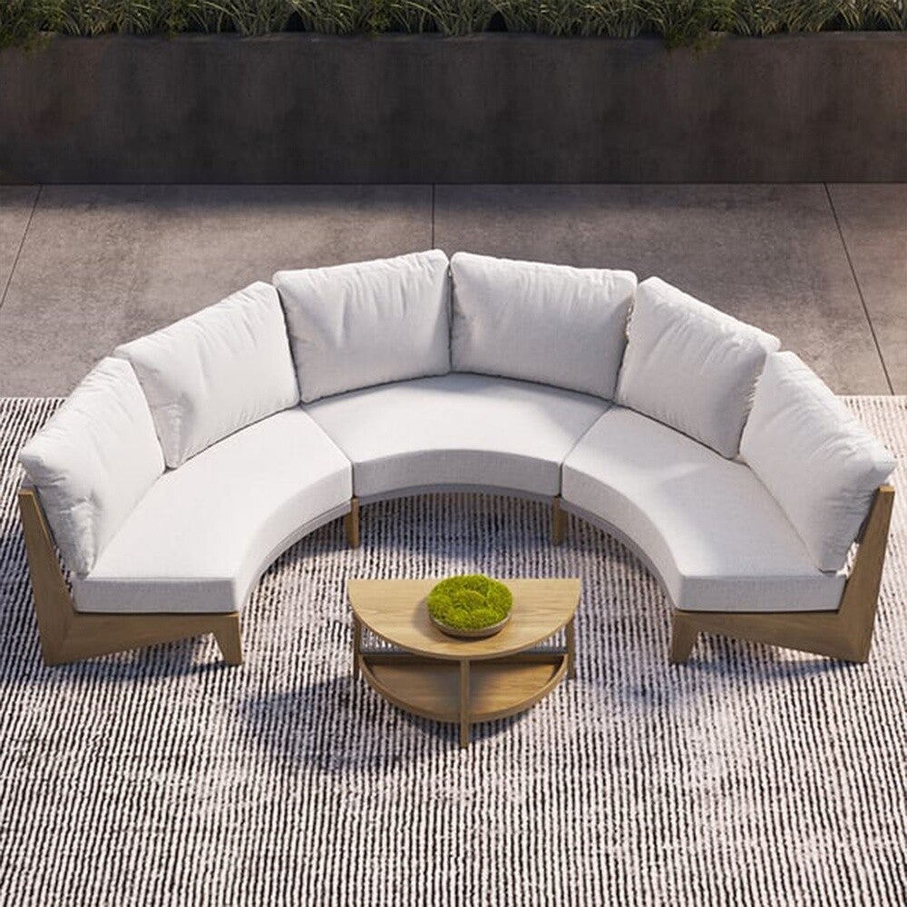 Grand salon de jardin 8/12 personnes avec structure en teck et finitions en corde tressée au niveau des dossiers avec coussins d'assisse de 20 cms d'épaisseur